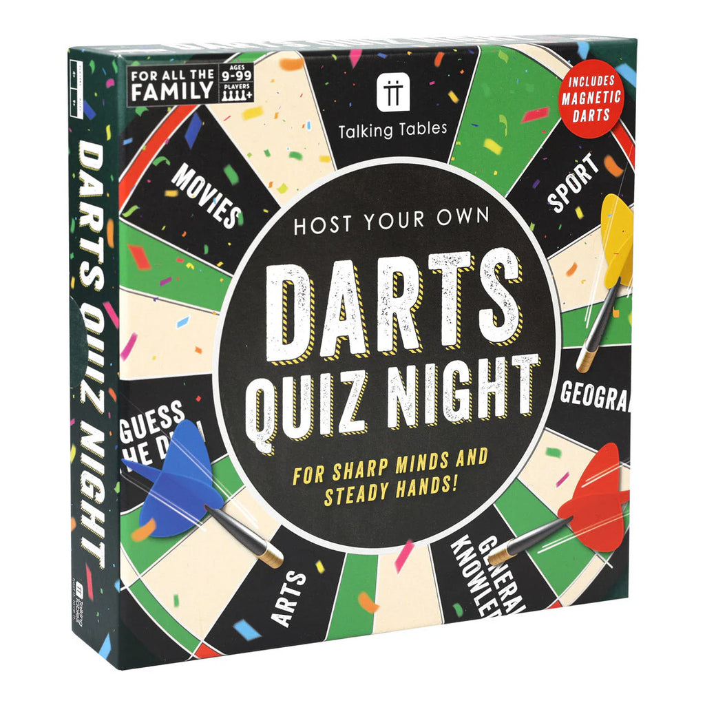 Take aim and test your knowledge with this fast paced fun darts quiz night game. Players throw to land on one of ten categories - from music and movies to science and sport - A hands on game night experience designed to bring everyone to the board