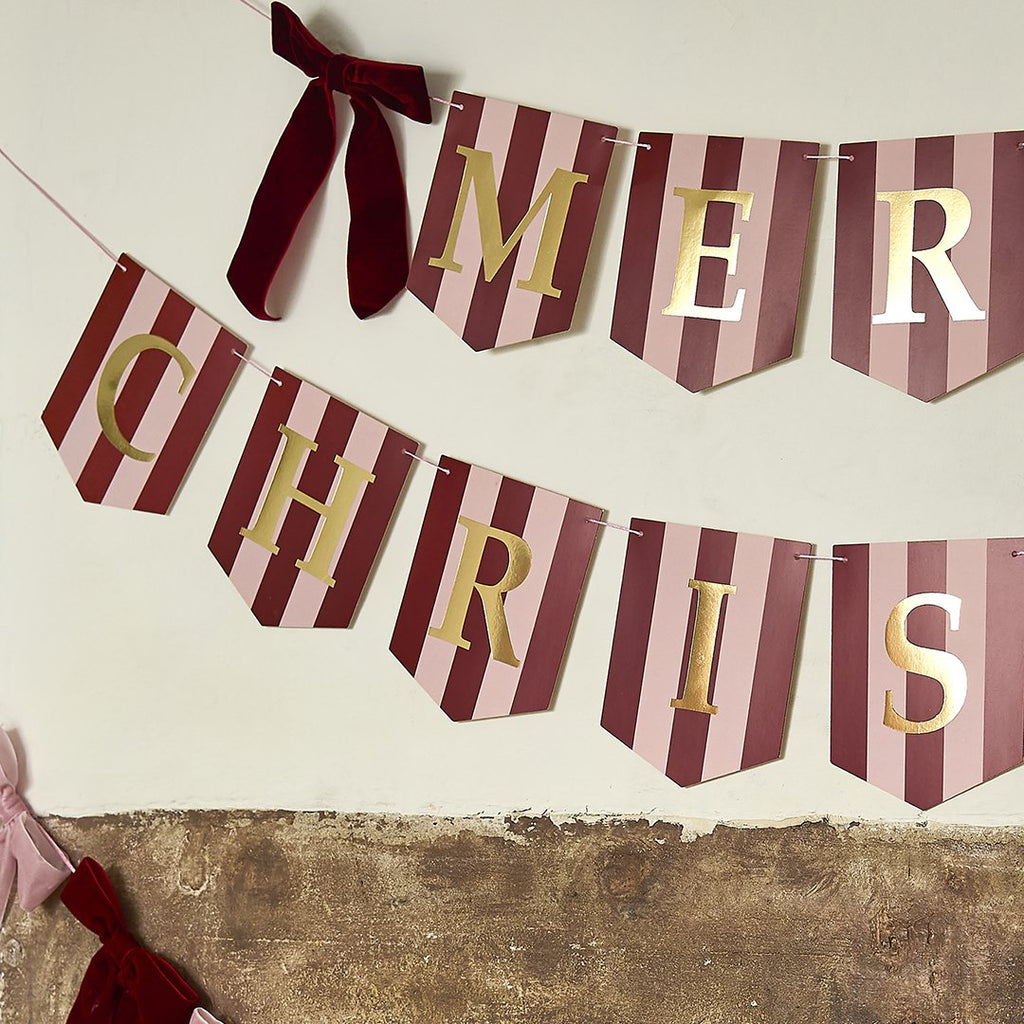 Add this gorgeously vintage striped festive banner with velvet bows to your Christmas decorations this year!